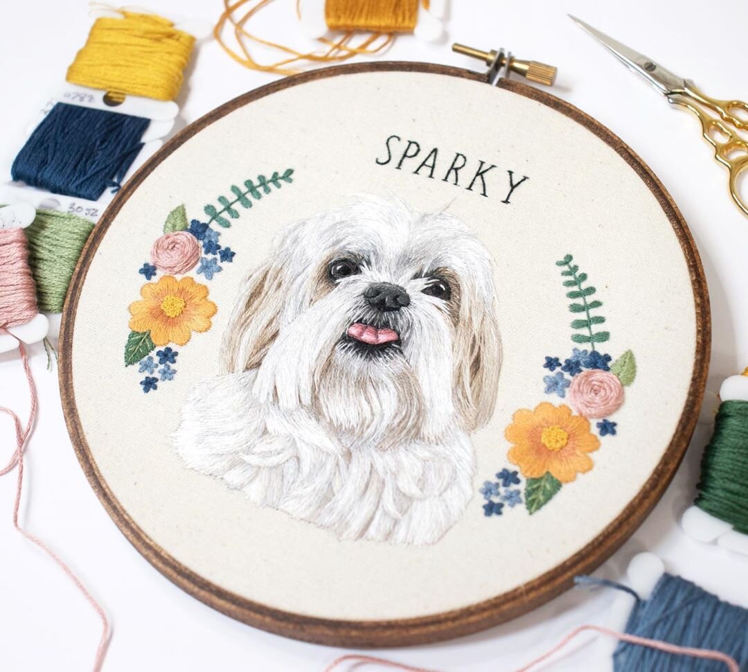 Как я поняла, Мишель занимается тем, что вышивает портреты домашних питомцев на заказ.