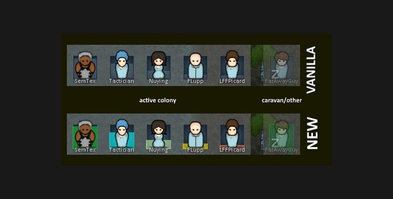 Небольшое изменение для интерфейса, чтобы быстрее понять, в каком настроении прибывает тот или иной колонист. От самой глубокой депрессии до максимального счастья цветовая палитра выглядит следующим образом: красный, оранжевый, желтый, серый, синий, зеленый.