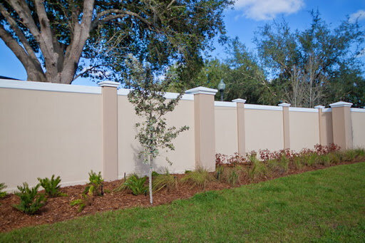 Бетонные заборы с гладкой поверхностью лучше всего красить фактурной краской. Она поможет изменить рельеф и придаст ограждению уникальности, а также надежно защитит его от негативного воздействия воды и температурных перепадов.