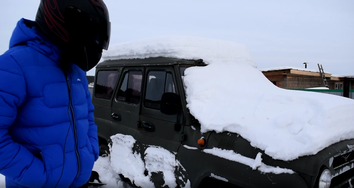 И так начинаем отчистку УАЗа от снега, чтобы взглянуть на этот бешенный мотор!