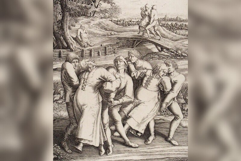 Погожим июльским деньком 1518 года жительница Страсбурга по имени Фра Троффеа, выйдя из дома по своим делам, вдруг начала приплясывать. Кто-то пытался ее остановить, а другим танец показался веселым, и они присоединились к нему. К несчастью, занятие оказалось заразительным в прямом смысле слова: начав двигаться, танцоры не могли остановиться. В течение недели процессия уже насчитывала сотню участников – или, вернее, участниц, поскольку большинство составляли молодые женщины. Несмотря на усилия местных врачей, «труппа» не уменьшалась, хотя танцоры уже падали от истощения, сердечных приступов и других проблем со здоровьем, и для физической поддержки были наняты крепкие мужчины. Это действо также сопровождали музыканты. Возможно, они делали это для создания настроения, но не исключено, что причиной была вера в то, что музыка лечит мании и расстройства. А власти выделили танцующим городскую площадь – в целях их безопасности, но все это возымело обратный эффект, и людей танцевало все больше. Вынужденное «веселье» не прекращалось, затронув не менее 400 человек. Страсбургская эпидемия закончилась только к сентябрю, и уцелевшие отправились отдыхать в монастыре. Кстати, сама Фра Троффеа пала в первых рядах. Но и на этом болезнь не ушла в историю: подобные необъяснимые вспышки еще фиксировались вплоть до XVII века.
