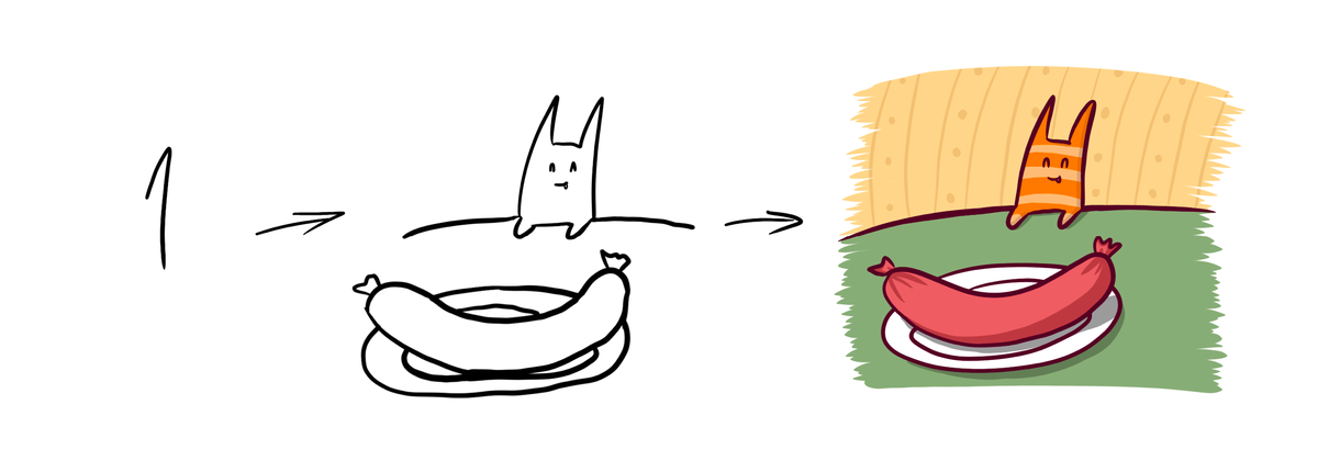 Сначала мы рисуем выразительное пятно, а потом пытаемся увидеть какой-либо образ. Помните, как разглядывали облака? В одном видели слона, в другом - жирафа. Здесь похожий принцип,