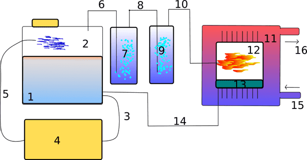 Так как для получения такого газа необходим электролиз воды, то применяют специальный электролиз для отопления. Для использования данной технологии в отопительной системе необходимо переделать стандартный котел. В основе такого оборудования будет электролизер, в который заливается электролит. На трубки или металлические пластины подается переменный ток. Вследствие этого происходит разъединение молекул водорода и кислорода. В результате чего получается газ Брауна.