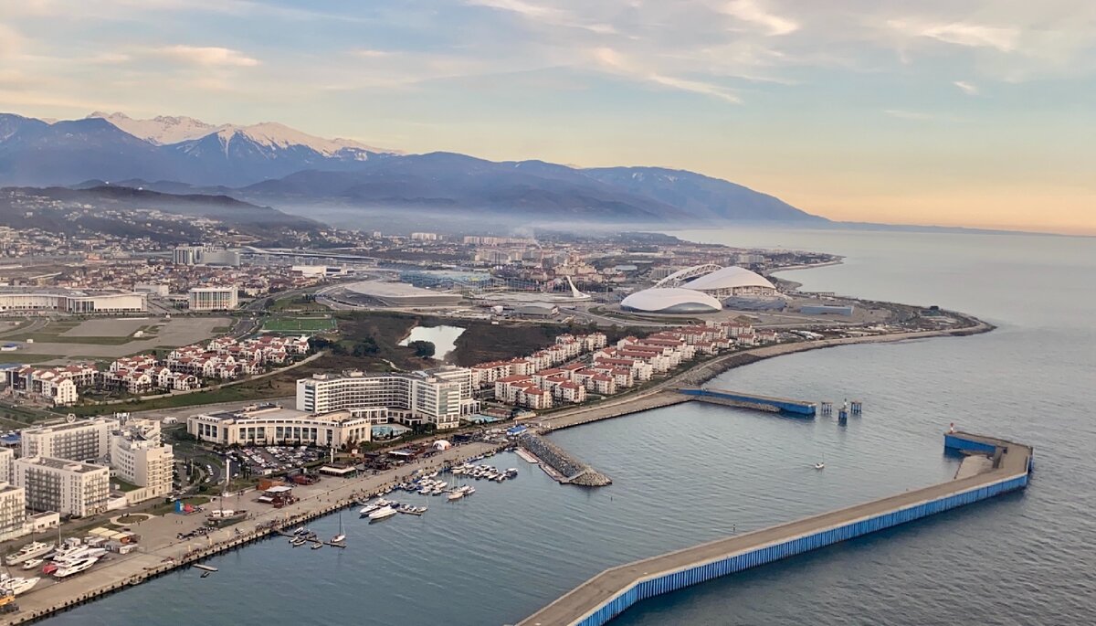 Если вы прилетаете на самолете в Сочи, то рекомендую взять место "D" у окна. Так как аэропорт находится вблизи олимпийского парка, то на посадке откроется красивый вид на все стадионы на фоне гор.