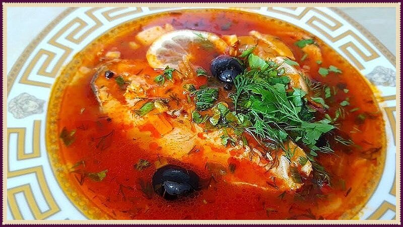 Для приготовления рыбной солянки нам потребуются следующие продукты: капуста белокочанная - 350 г; огурцы соленные 5 штук; соленые грибы - 300 г; морковь - 1 штука; болгарский перец - 1 штука; оливковое масло - по вкусу; лук - 1 штука; томатная паста - 1,5 столовой ложки; лосось - 1,2 кг; лавровый лист - 1 штука; черный перец (горошек) - по вкусу; сметана - по вкусу; лимон - по