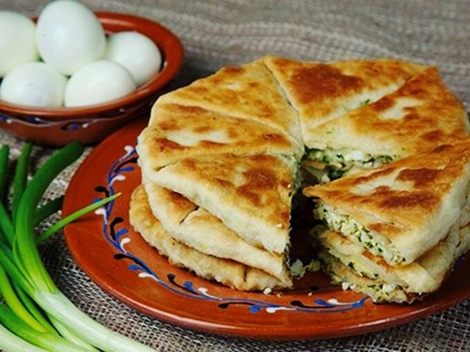 Разогреть сковороду, желательно с толстым дном, налить растительного масла так, чтоб дно было закрыто, и положить нашу плацинду верхней стороной вниз.