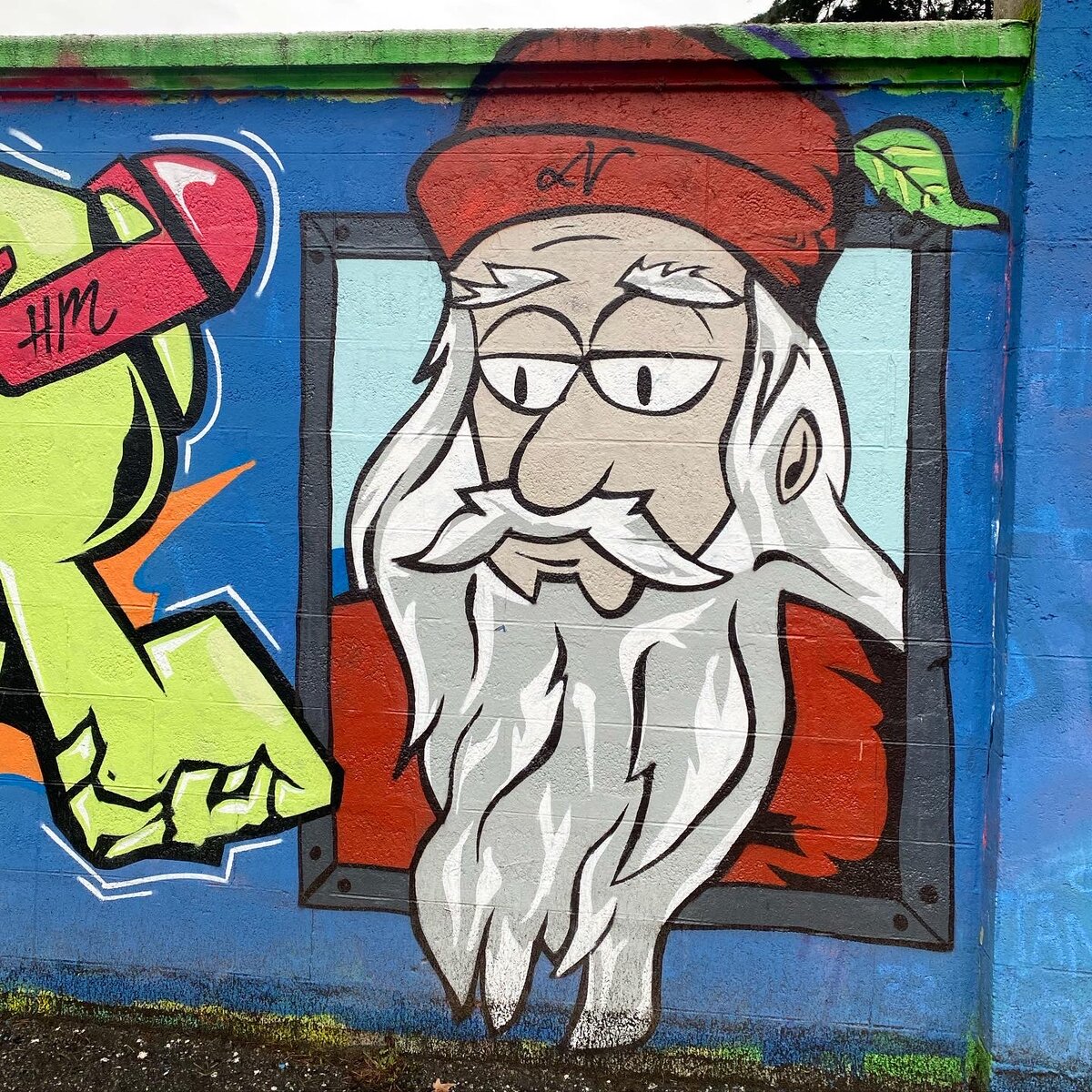 Так я собрала подборку из граффити с его портретами. Также в моей коллекции есть снимки настенного витрувианского человека и интерперетацииэскизов его изобретений.