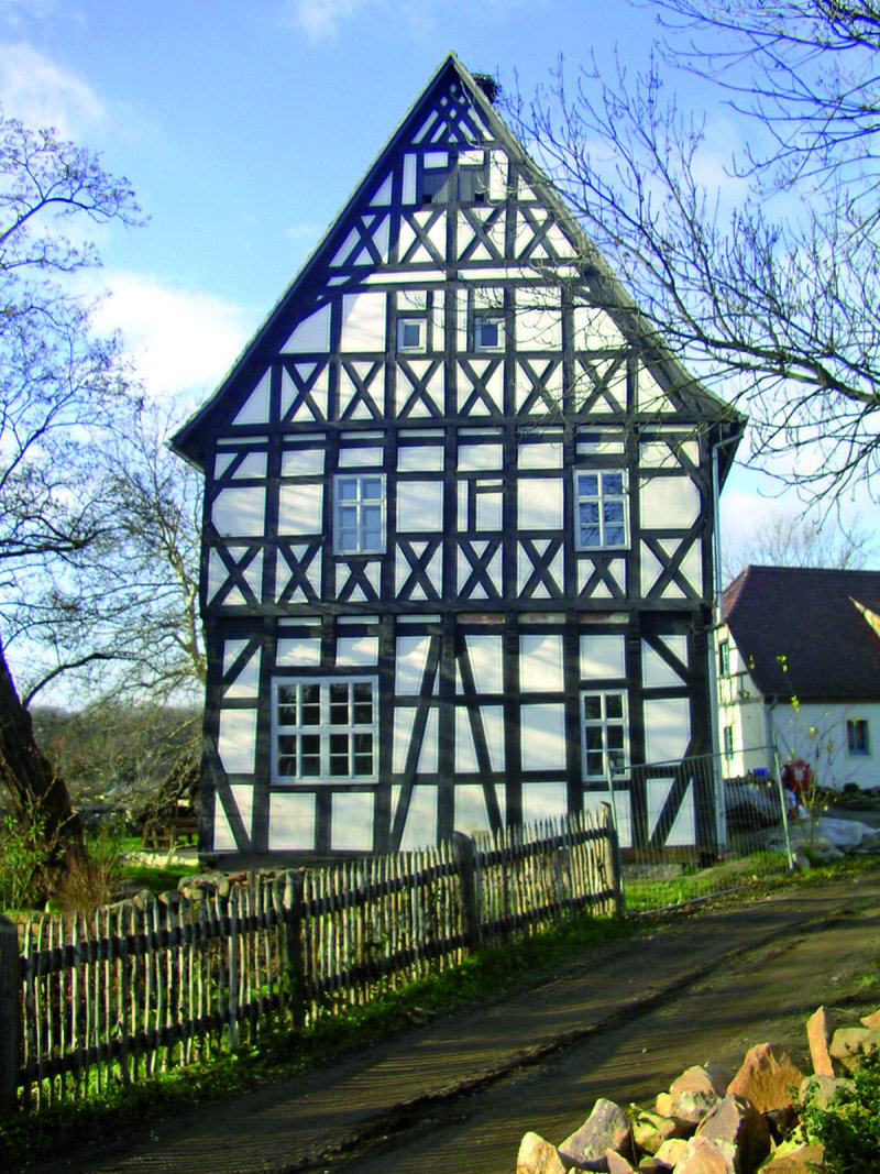 Пространство под крышей фахверкового дома воспринимается как чердак. В старинных фахверковых домах количество этажей обычно два.