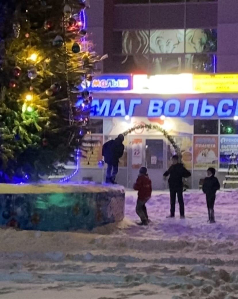 Житель города Вольска Саратовской области Данила вечером 14 января снял видео, как несовершеннолетние уродуют новогоднюю елку на центральной площади.