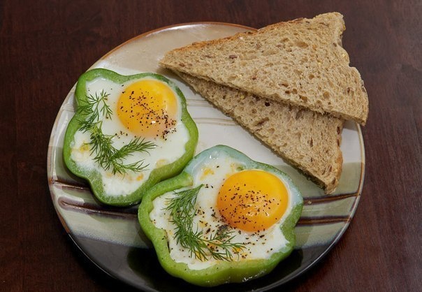 Глазунья в кольцах болгарского перца.☺