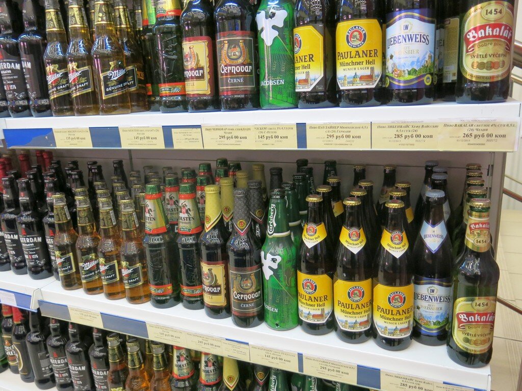 Если брать пиво, то при детальном изучении ассортимента оказывается, что здесь сосредоточено примерно 90% продукции "Московской Пивоваренной Компании": Хамовники, Жигули, Трёхгорное, Эль Мохнатый Шмель, Мотор, Oettinger, Hollandia и др. Среди прочего, есть пиво, которое "МПК" варит специально для магазинов "Фикс Прайс", например, "Лосиный Берег" (27 руб 50 коп за 0,33 л и 55 руб за 1.1 л) и "Cervena Selka" (1.3 л за 77 руб). Цены на два этих пива, действительно, низкие, однако в плане вкуса и аромата это пиво абсолютно никакое. Тем не менее его активно покупают.