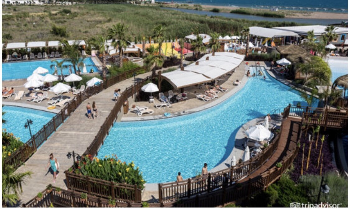 6 бассейнов: открытый бассейн, 3800 кв.м, разделен на 2 части, одна из которых подогревается, 300 кв.м, 1 подогреваемый крытый, 300 кв.м, бассейн с джакузи в СПА, аквапарк 510 кв.м - бассейн с водными горками (5 горок), полуолимпийский бассейн, 310 кв.м и 2 детских бассейна