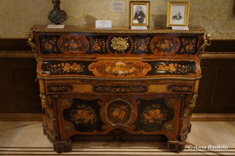 Сейчас в гостиной хранятся музыкальные инструменты. Среди экспонатов скрипки работ Страдивари и Амати, а также личные вещи композитора Михаила Глинки. В одной из витрин, принадлежавшая ему скрипка, а в центре гостиной - рояль композитора.