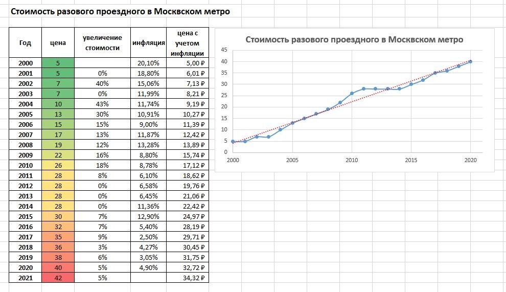 С этого года повышение стоимости было практически ежегодное и достигала в: