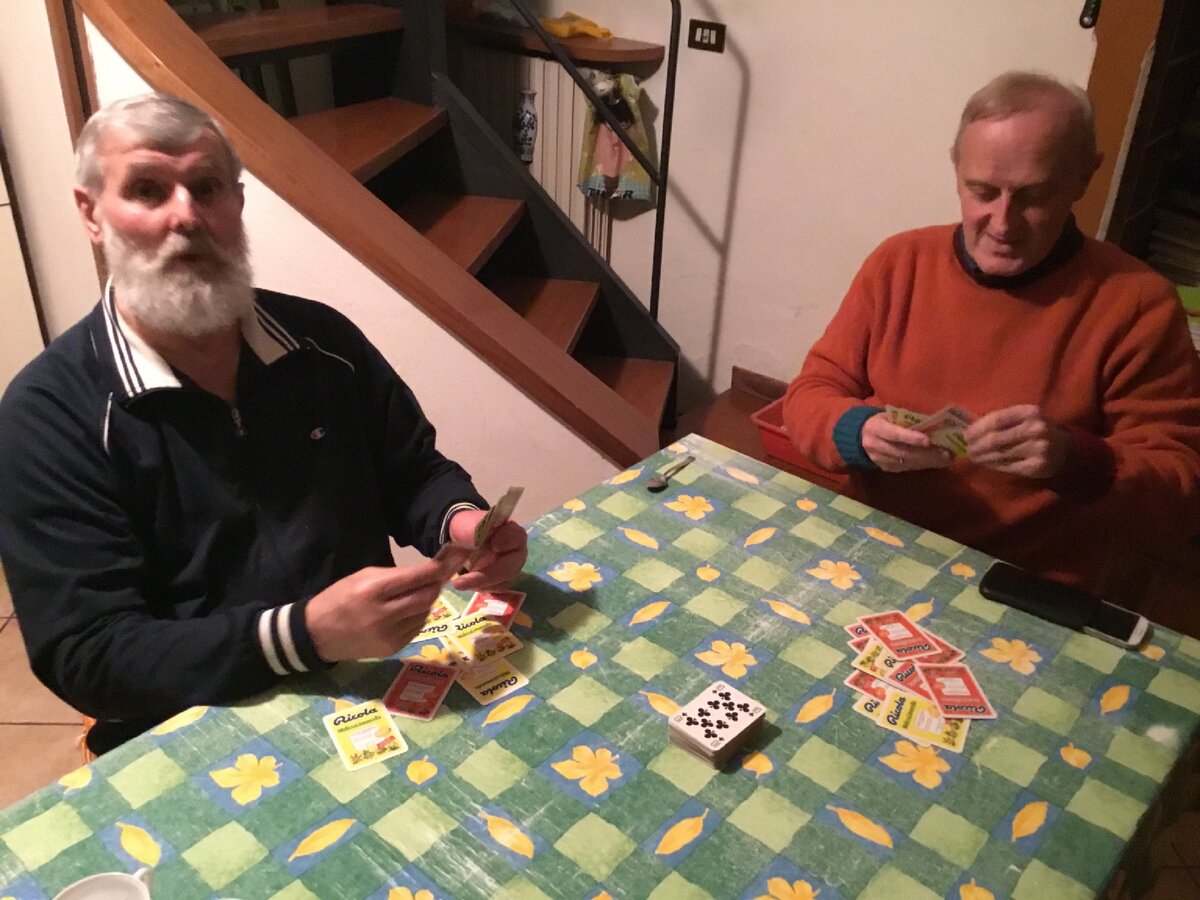 Впереди воскресенье, потому можно играть в карты допоздна. Нравится мне итальянская игра скала кваранта (scala quaranta). Фабио всегда выигрывает и мне тоже хочется научиться играть так же хорошо, как он. У него за плечами годы тренировок в соседнем баре, а я только недавно начала играть (спасибо коронавирусу).