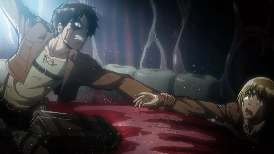 Знаете, иногда я думаю, что Эрен должен был остаться мертвым. Прорыв стены и вторжение титанов в Трост - одна из моих любимых и самых запоминающихся арок. Нам показали с каким воодушевлением молодой Йегер и новички вступили в бой и как персонажи стали погибать один за другим, сам Эрен лишился ноги, а Армин оцепенел перед лицом неизбежной гибели. Сцена самопожертвования Эрена, спасшего друга из пасти титана - одна из самых сильных и запоминающихся. Ты одновременно не можешь поверить в смерть того, кто должен был быть главным героем, но гибель огромного количества людей и всей группы Армина заставляют признать реальность происходящего. Такой поворот был бы не только неожиданным, но и реалистичным, показывающим, что как бы ты не был настроен "истребить всех титанов", погибнуть можешь при встрече даже с первым противником. Но, как и многие, я был рад его возвращению, ведь иначе, это было бы совсем другое произведение.