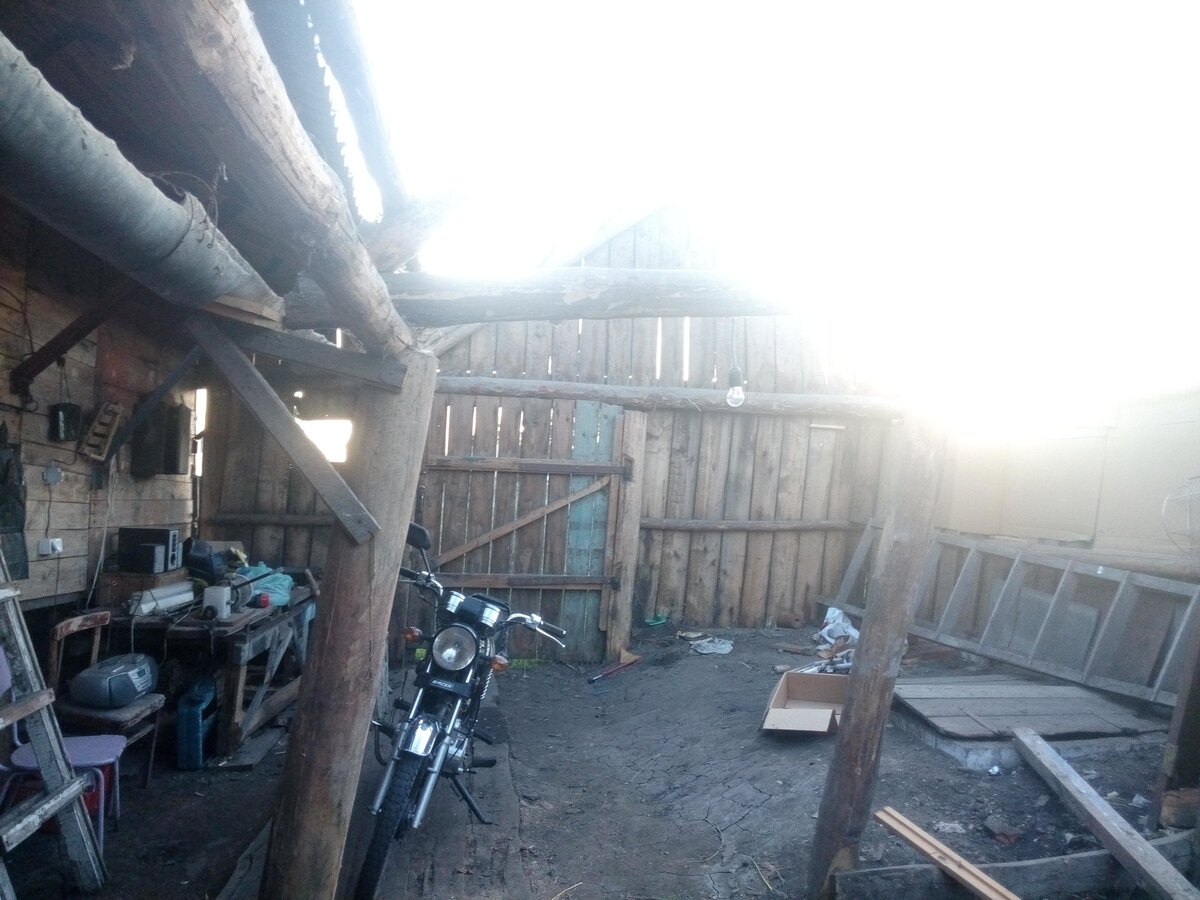 Наш старый двор, как легко догадаться, не перестраивался по меньшей мере несколько десятилетий. Учитывая,насколько старый на деревне дом, это вполне понятно. Двор же, слегка покосившийся набок,готовый рухнуть в сторону от дома, держался на честном слове. Поэтому было решено перестроить его,а заодно организовать какое-то подобие гаража для техники, резко увеличившейся в тот год в численности.