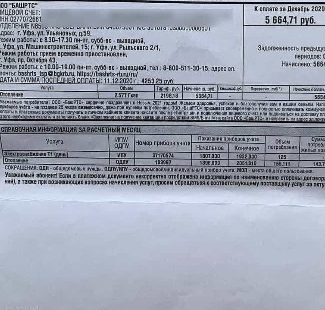 А преподнесла подарки именно компания БашРТС выставленными платежками за декабрь 2020 года, которые оказались просто очень заоблачными.