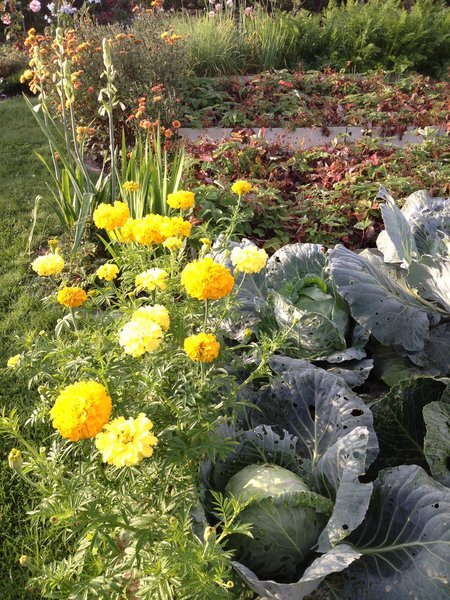 В третьих : я проводила "эксперимент". То есть сажала часть капусты с бархотками, а часть без них. И бархотки выиграли. На этой капусте гусениц было намного ( в несколько раз) меньше.