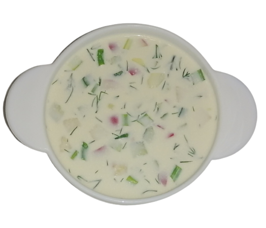 Блюдо готово, заправлять окрошку холодной водой с уксусом нужно перед самой подачей на стол.
