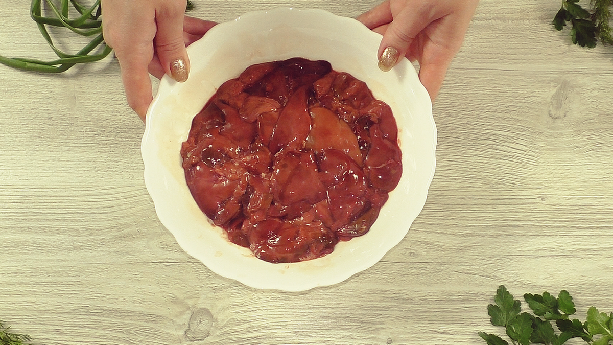 Закладываем печень и готовим всё вместе минут 5, чтобы печень обжарилась со всех сторон.