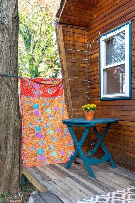 Обычно в микро-домах не используют ярких акцентных цветов, чтобы не уставать от интерьера и едино он воспринимался более целостно. Здесь не побоялись использовать очень разных цветов, хватило место даже чтобы повесить картины и разместить комнатные цветы.