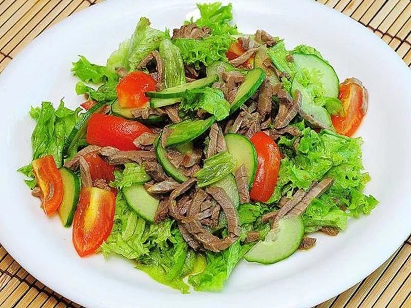 Ужин: отварная говядина, салат из свежих овощей, чай
