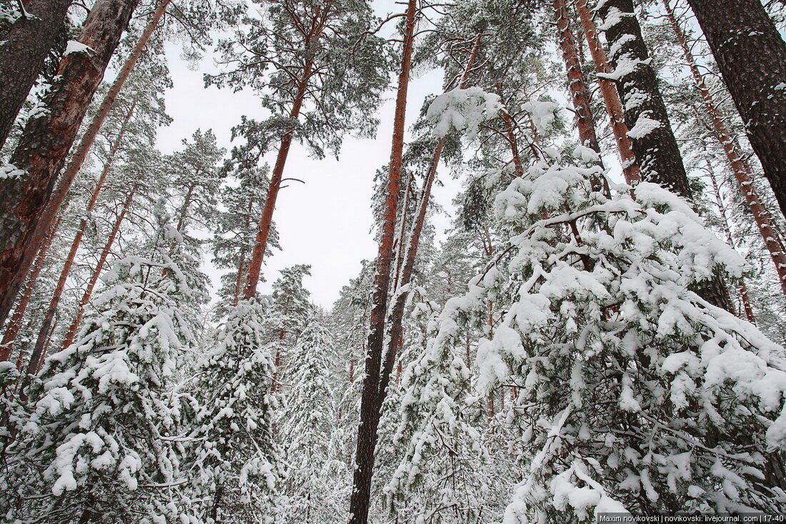 Прогуливаясь по лесу, набрёл на молодой сосновый бор. Посмотрите, какие ровные посадки - дерево к дереву. Под снежной шапкой выглядит это красиво.