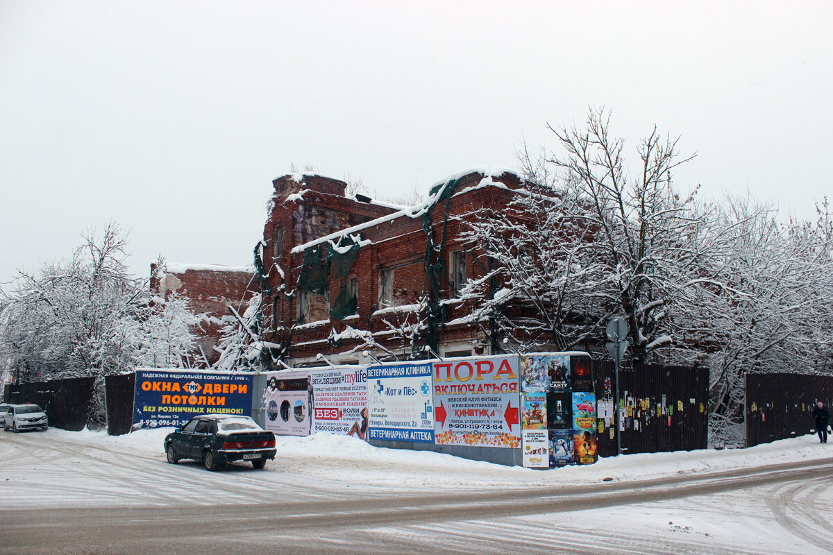 Обычно, когда я приезжаю из Москвы в какой-нибудь провинциальный городок, у меня создается впечатление, что я попал на какую-то другую планету. В случае с Кимрами эти ощущения еще ярче: на "другую планету" можно попасть даже не из Москвы, а из Дубны, которая всего в 20 километрах южнее. Дубна и Кимры - это два разных измерения. В этой статье я покажу фотографии самого центра города, а в следующих пробежимся по другим улицам. Население Кимр около 40 000 человек. Все 15 лет, которые я езжу в этот город, он выглядит примерно одинаково. Если какое-то здание ремонтируют, другое в это же время окончательно разрушается. Ни в одном российском городе центр не выглядит так ужасно. А я посетил их почти 140. Главная площадь Кимр называется Театральная, и ее уже не одно десятилетие "украшают" руины Гостиного двора - памятника архитектуры 1914 года. Не так давно обрушился фасад. Через дорогу - развалины торговых рядов, построенных в 1909 году. Напомню, что это самый центр города, примерно как в Моск