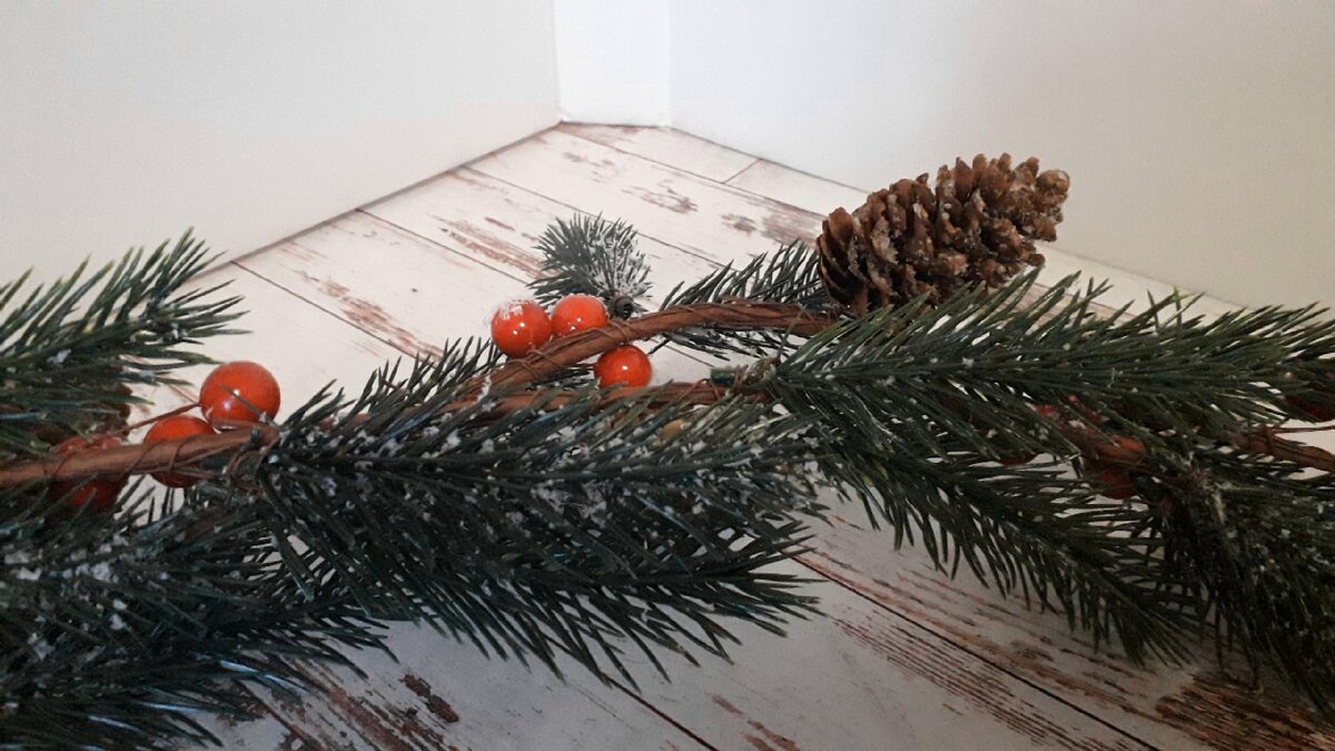В магазине Фикс-прайс мы нашли гирлянды с еловыми ветками, шишками и ягодами, покрытые снегом - и этот эффект нам очень понравился, захотелось повторить такое покрытие на наших игрушках.