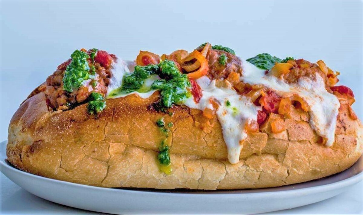Поверх всей начинки выкладываем моцареллу, и можно отправлять нашу пиццу в духовку на 15 минут (когда сыр расплавится и батон подрумянится, достаём и можно подавать к столу).