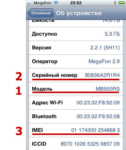 Итак, первое, что делают перед покупкой – это проверка Айфона по серийному номеру, который должен совпадать на упаковке и в ПО смартфона. При первом включении телефона заветные цифры можно узнать, нажав на кнопку «i» в правом нижнем углу экрана приветствия. Или же по пути в меню «Настройки» – «Основные» – «Об этом устройстве». К слову, то, что при запуске смартфон предложил пройти весь путь настроек и включил приветственное окно, совсем ничего не значит. То же самое произойдет и на аппарате 5-летней давности, если его операционную систему сбросить к заводским настройкам.