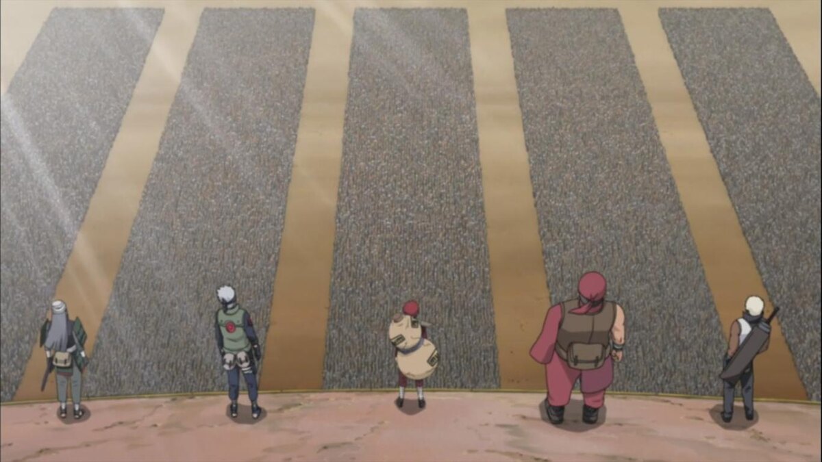 Некоторые из шиноби начали сомневаться в том, что Пятый Казекаге достаточно опытен для того, чтобы быть главнокомандующим. Шиноби начали ругаться между собой и вспоминать старые обиду между деревнями, как, например, трагедия на Перевале Йосуга. Но Гаара остановил их и произнес воодушевляющую речь, в которой сказал, что сейчас нет деревень, а есть только шиноби, после которой отношение шиноби друг к другу изменилось, а те, кто ссорились, попросили прощения друг у друга.