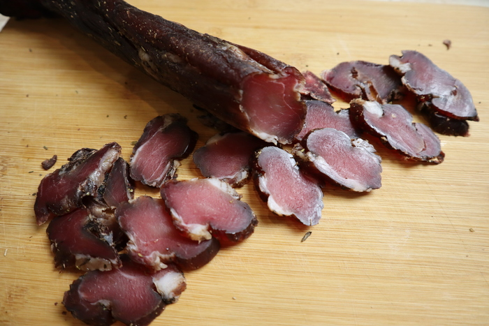 Продукт получился классный, это уже не закуска к пиву, а настоящий, мясной деликатес из свинины.