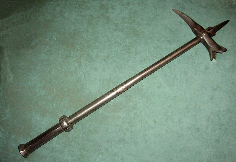Грубо говоря это боевой молот с тупой и острой частью. Это оружие показывало что владелец высокого социального ранга.