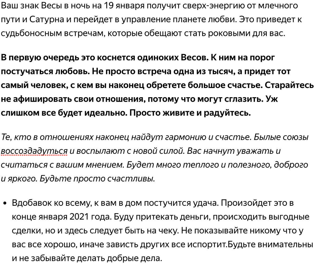 Январь вступил в свою вторую половину и сегодня самое время рассказать о самом важно гороскопе - для людей рожденных под знаком Весы. Время летит и перемены очень близко. Весам нужно бдить, потому что их знак наконец сошел с линии напряженности и Венера готова взять его под контроль. 19 января вы станете свидетелем того, как Венера возьмет ваш знак во владение. Это приведет к перевороту в личной