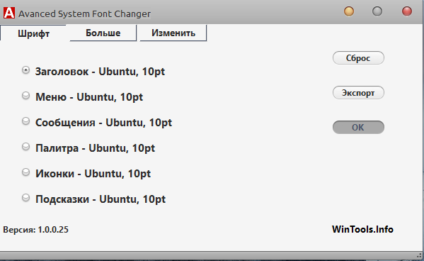 Advanced System Font Changer – простая портативная программа, с помощью которой вы сможете корректировать в системе размер шрифта, изменить сам шрифт и его стиль, для этого даны все настройки, остается только щелкнуть по нужному меню. Во вкладке Больше расположены настройки отдельных элементов окна: скроллинга, меню, иконок и т.д. Все изменения происходят