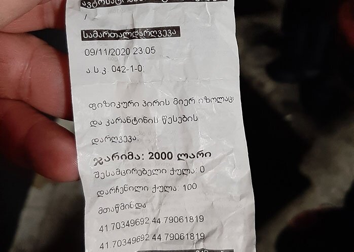 На что они никак не отреагировали, и сразу же начали спрашивать наше имя и фамилию, а так же номера наших паспортов. Далее ситуация выглядела таким образом, как будто мы какие то террористы... приехало экипажей семь, мы стоим вдвоем, те вышли улыбаются, курят, радуются чему то, мол вот теперь им штраф будет и все в таком духе...подходит к нам сотрудник полиции спустя минут 20ть, включает камеру, и говорит следующее - вы нарушили закон, штраф вам в размере 2000 лари, аналогично и брату моему тоже самое и в сумме мол 4000 лари!