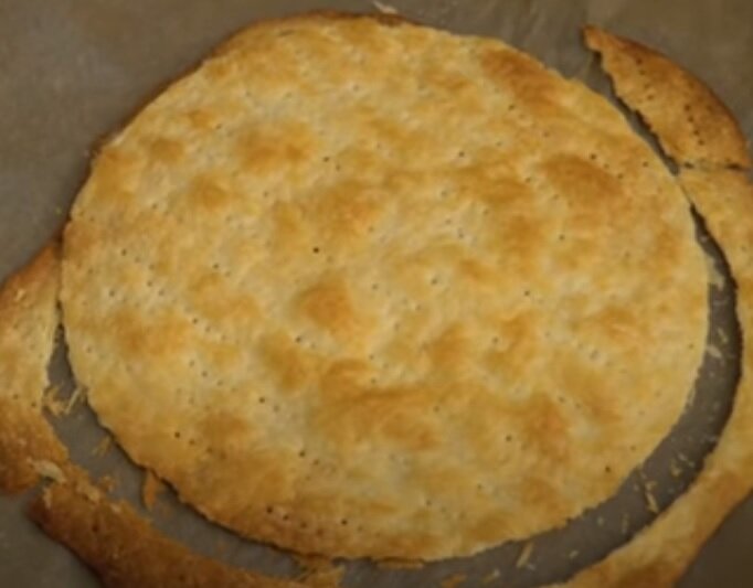 3 Части теста из холодильника раскатываем в коржи. Толщина коржа 1-3 мм. Выпекаем в духовке прогретой до 200-220 градусов приблизительно 5-7 минут (до золотистого цвета). Получившиеся коржи обрезаем по форме будущего торта. Обрезки измельчаем для дальнейшего украшения торта.