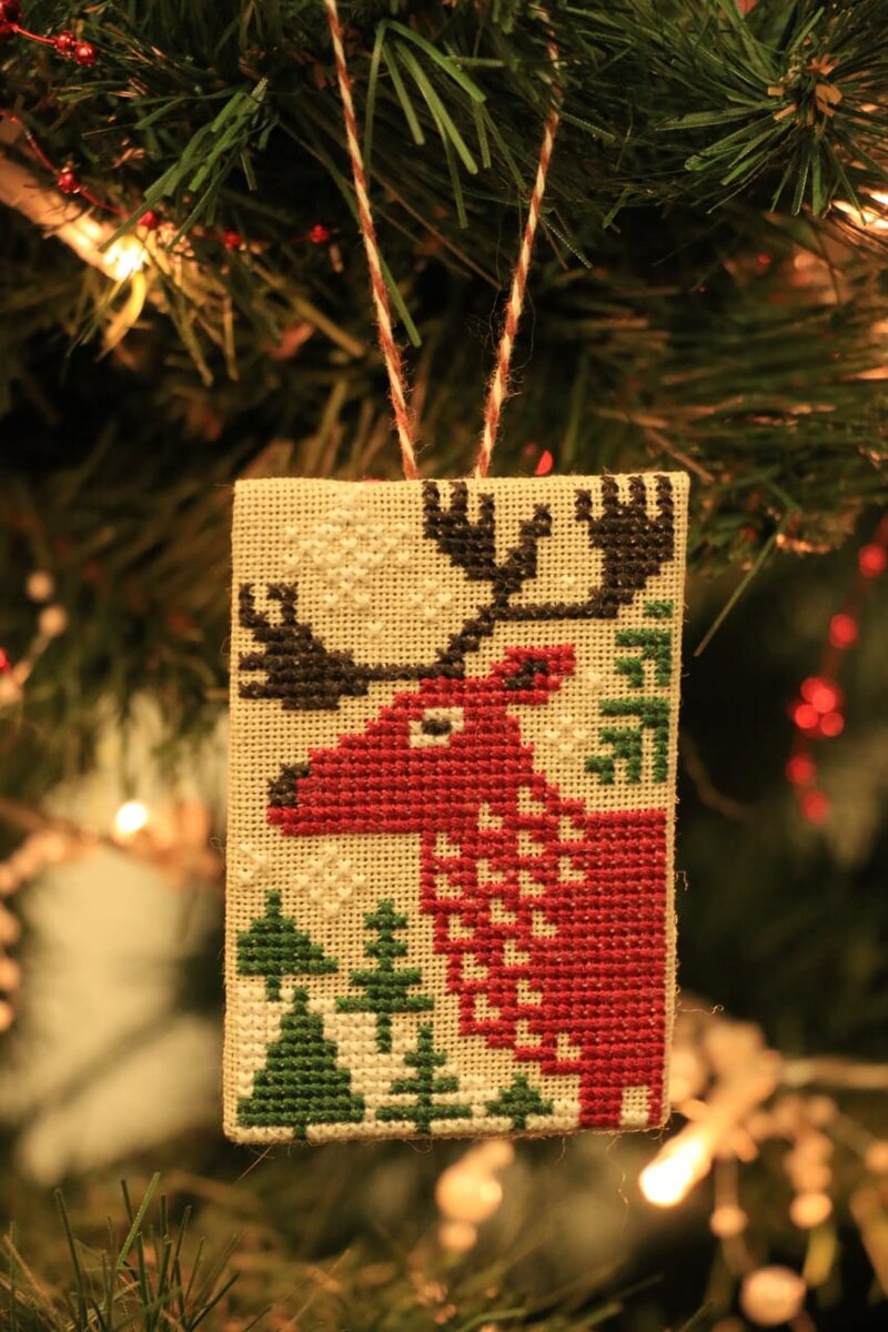 Вот такой готовый лось висел у меня на ёлке, ещё осталось сделать три пинкипа из уже готовых вышивкой и один сюжет вышить.