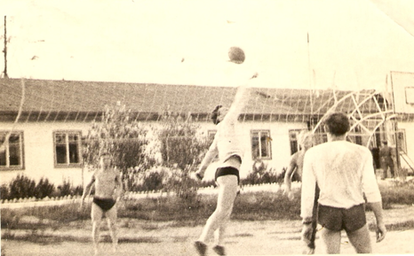 В техникуме был небольшой спортзал ( волейбольная площадка обозначалась даже по краям на высоте примерно 1.2 метра). Имелось также 2-а баскетбольных щита для игры в баскетбол. С 1-го курса я часто стал «пропадать» в спортзале после занятий. Там часто тренировались в волейбол старшекурсники, которые играли за техникум на различных соревнованиях по волейболу (на первенстве районов и города среди техникумов и даже институтов), и я смотрел на их игру. Иногда они меня приглашали судить их игру. Однажды у них был недобор играющих и меня позвали поиграть вместе с ними. В результате моя игра им понравилась, так как я неплохо подавал мячи и неплохо набрасывал их на позиции нападающих для ударов над сеткой, а также неплохо сыграл в защите ( у меня была хорошая реакция, и я отбивал мячи в прыжках и в падениях). С тех пор они всегда меня принимали на свою игру в ущерб даже других ребят, играющих за сборную техникума. В этот год все старшекурсники, играющие за сборную техникума, окончив летом полный курс техникума и получив распределения на предприятия России, ушли из команды. И вот со 2-го курса организовалась новая волейбольная сборная, где я стал полноправным членом сборной техникума. Надо сказать, что часто проводились игры среди групп всех отделений техникума. На 2-ой курс пришли некоторые ребята после окончания десятилетней школы и поступивших в наш техникум. Среди них оказались ребята, довольно хорошо играющих в волейбол. Начали после занятий играть в волейбол, и постепенно отобралась группа ребят, которые более-менее хорошо показали себя. С этих пор организовалась сборная команда техникума, куда я входил полноправным игроком, и мы стали проводить планомерные тренировки. Команда оказалась довольно сильной, и мы играли на первенствах города исключительно со сборными командами институтов города и довольно успешно, Как правило, мы занимали места не ниже второго. Тренировались иногда до позднего вечера, сил тратили много, а желудки были пустые. Поэтому в 1955 году у меня в животе открылось сильное бурление, которое с годами не проходило (постоянно скапливались газы, которые плохо сдерживались и самопроизвольно выходили наружу), я часто бегал в туалеты, ввиду чего ребята из команды смеялись надо мной и говорили, что я опять пошёл в туалет «по графику». Меня это сильно беспокоило и раздражало, приходилось сторониться всех людей. (Кстати, это продолжалось вплоть до 1995 года, когда я предпринял кое-какие шаги по снижению этого недуга).