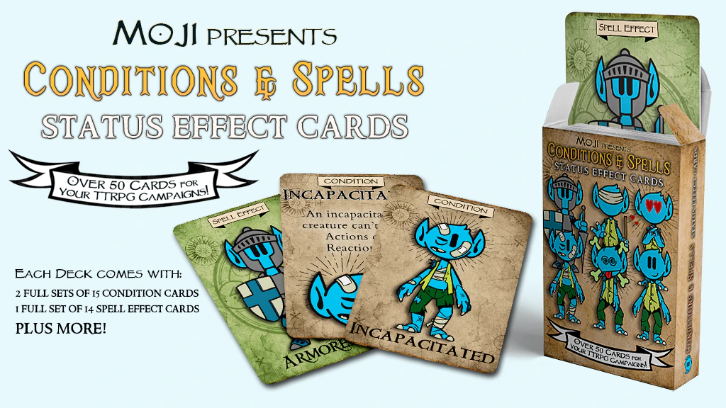 Deck of Moji Condition & Spell Cards for 5e & TTRPGs!