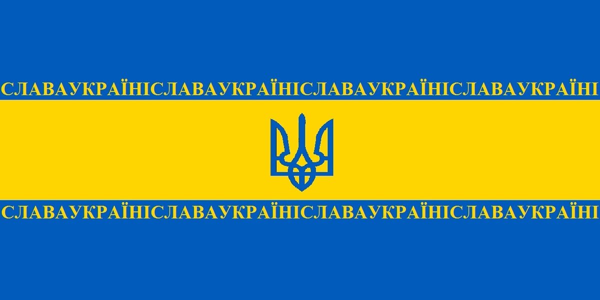 Флаг стилизован под национальный стяг Иранской Арабской республики. В центре украинский трезубец, а в синие полосы вписано "Слава Украине", вместо "Аллах акбар" в оригинале. В целом - достойный и нетривиальный экземпляр авторского флага. А мы движемся далее.