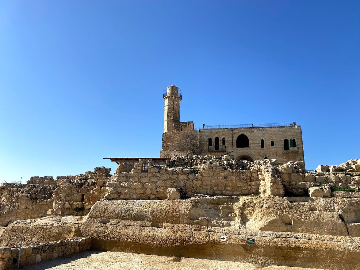 Сейчас тут расположен Национальный парк. С горы открывается захватывающая панорама Иудейских гор, Иерусалима и даже гор Иордании. В центре парка возвышается здание мечети с минаретом, построенное в 18 веке на базе разрушенной церкви крестоносцев 12 века. А церковь, в свою очередь, стоит на руинах древнего еврейского и эллинистического городов – вот такой археологический слоеный пирог - смотри в сторис!