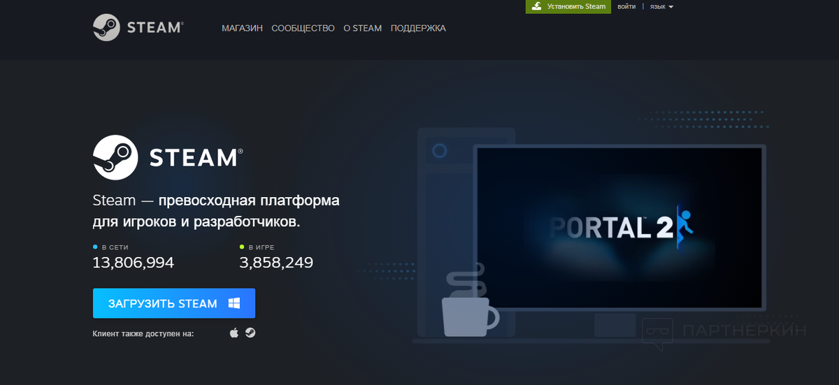 Итак, чтобы скачать Стим, переходим на официальный сайт: