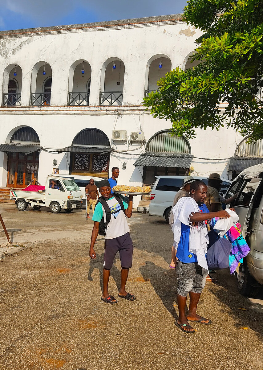 Занзибар-Сити, с туристической точки зрения, мало чем интересен. Разве что тем, что скоро там откроется первый торговый комплекс и, наконец-то, наши женщины смогут сходить на настоящий шоппинг. Но это все в скором будущем. А пока можно понаблюдать за занзибарской жизнью из окна автобуса. Сам по себе Занзибар (говорим сейчас о городе) довольно-таки большой и по-своему колоритный. С какого бы пляжа вы не ехали экскурсию в Стоун Таун, все равно проедете через пригороды, где увидите глиняные хижины-мазанки с пальмовыми крышами и базары-развалы вдоль трассы. Но чем ближе к центру, тем дома становятся все более современными, обычные наши пятиэтажки.