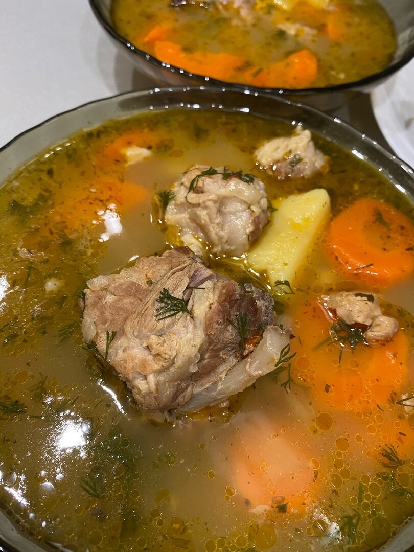 Сегодня расскажу как мы готовим шурпу на свой лад. Т.к. баранину и говядину я не ем, свиные рёбрышки идеально подходят для нашего блюда.