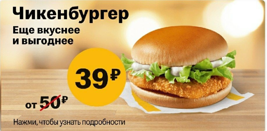 Чикенбургер отдают по 39 рублей. Приятного аппетита!