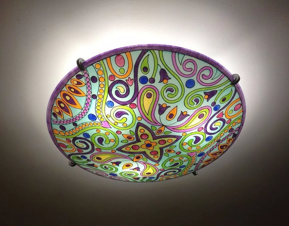 Для того, чтоб этот элемент выполнял не только свою основную функцию, но и выступал в качестве оригинального предмета декора необходима ручная роспись светильника.