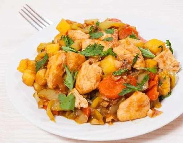 *Подготавливаем все необходимое! ( нарезаем крупно картофель Морковь, лук, курицу , помидор)